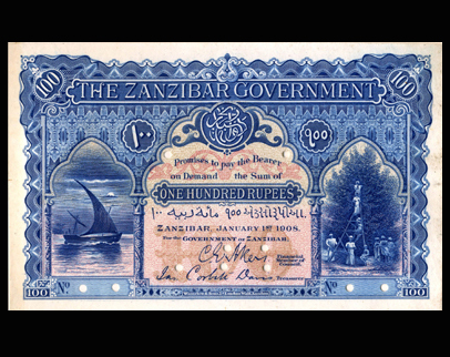 An incredibly rare Zanzibar 100 rupees, 1908, part of a set of four notes sold in April 2011 for £180,000»