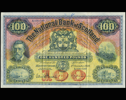 A National bank of Scotland £100 note, 1949, in superb condition, sold in April 2012 for £4,900»
