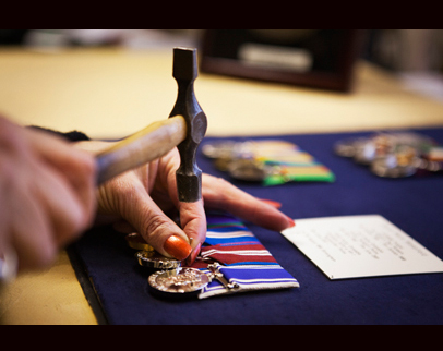 Spink provide a service of mounting regulation medals and miniatures, also supplying sashes and neck ribands for both ladies and gentleman. We also undertake the casing of a client's awards, from a single medal to a variety of collections.